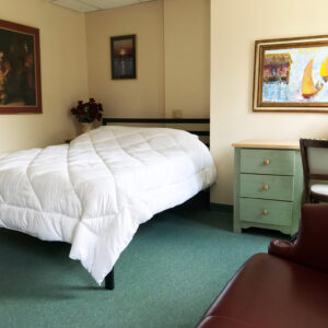 The Annex Suite features a queen size bed and handicap accessible bathroom.